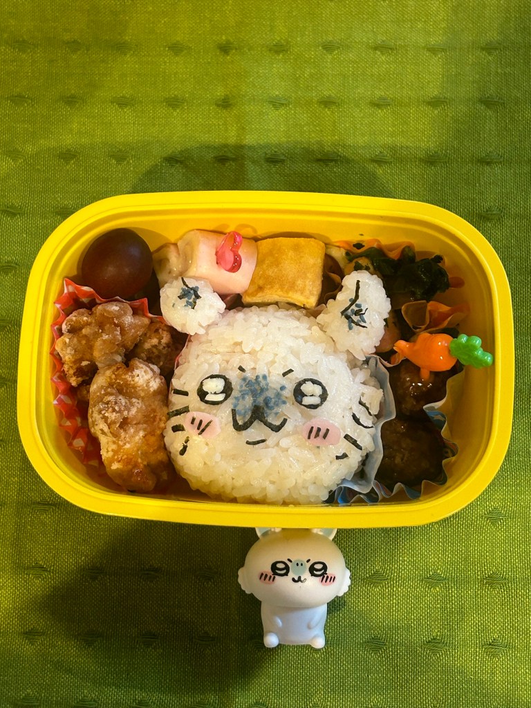 歓迎遠足や幼稚園の給食がなかったりでお弁当も作りましたー!下手くそですが娘さん用のあるキャラクターです。