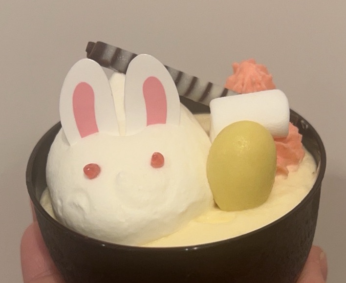 ホイップクリーム入りカスタードクリームが月・ホイップクリームのうさぎさん・マシュマロがお餅・チョコレートが杵だそうです。