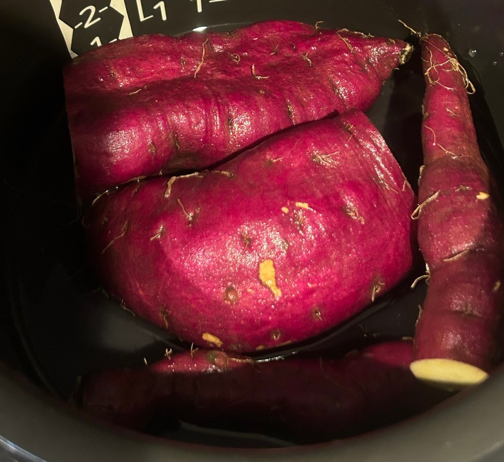 ②炊飯器へ芋と水50cc〜100ccくらい入れる※切ってオッケー