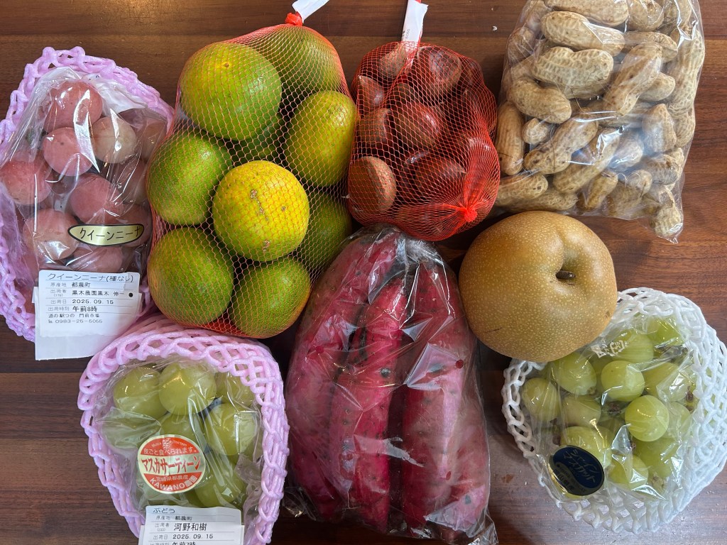 実家やらご近所さんから秋の味覚のお裾分けをたくさんいただきました✨🍇